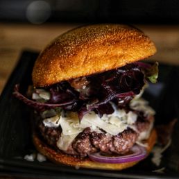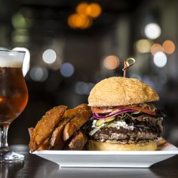4/5: Food Came for happy hour, ordered the fried chicken Korean sliders, butter burger fried pickles, 12ht short ribs,and the portobello mushroom fries! I had a mocktail, "I'm the driver" drink, it was delicious! Husband had the whiskey flight, which was a nice touch. I would recommend the portobello mushroom fries and butter burger. The 12hr short ribs were flavorful, but without the sauce was a little dry. Service: 5/5 Waitress was really attentive and nice. Ambiance: 5/5 Nice weather to sit outdoors with better lighting. Indoor decorations were nice too but quite dark if you go for an early dinner.