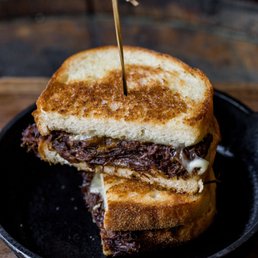 located in a very nice area. there's parking in a structure which makes it easy to find the restaurant. they offer happy hour monday-friday 3-6pm and they have some yummy bites and drinks got their 12 hour beef short rib, shrimp and grits, spicy chicken and cheese dip, and mushroom fries everything was so delicious!! food does take a little bit to come out but it's worth the wait. the short rib was so meaty and tender, the sauce pairs so nicely with the mashed potatoes. the shrimp and grits had a lot of flavor, the sauce was a little spicy and added the perfect touch. the chicken dip was addicting, especially with their house made chips! the mushroom fries could have been a bit more crispier. but it paired nicely with the sauce on the side their drinks are delicious and our waitress was so accommodating and nice. she gave us drink recommendations and food options!! interior is fab and we had a great time